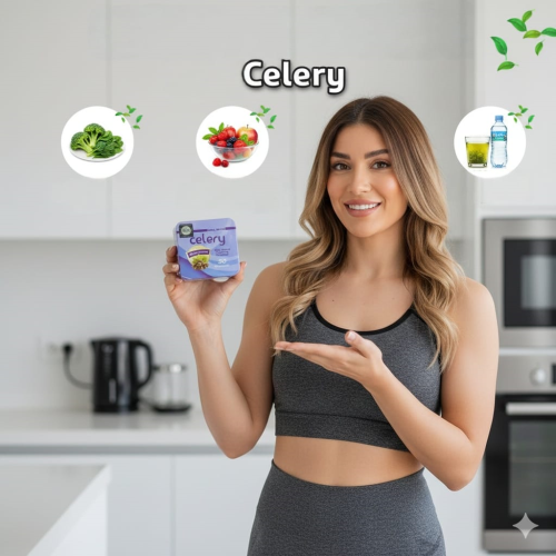 كبسولات سيليري مستخلصة من نبات الكرفس، وبتساعدك تدعمي مشوار التخسيس وحرق الدهون مع نظام غذائي صحي ولايف ستايل متوازن 🌿